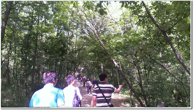 队伍从大蜀山森林公园东麓出发,穿过革命烈士公墓,沿着陡峭的山石向上攀登。途中,聆听了一位安大退休副教授的介绍,这位老人曾经致信日本首相安倍批评其对待历史的错误态度。之后,我们在乱石和丛林中找到了抗日战争期间日军在合肥大蜀山修建的碉堡。继而,在登顶之后,看到了侵华日军在大蜀山顶修建的纪念碑。